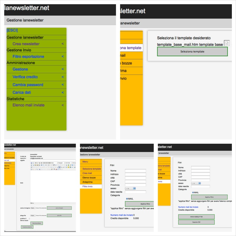 Con un intuitivo editor di testo, scriviamo e inseriamo le immagini preventivamente caricate nel sistema, e iniziamo a guardare le anteprime. Possiamo gestire la grafica in due modi, in base alle nostre esperienze, o dall'editor stesso o caricando un files html per la base (eventualmente operazione anche opzionalmente asssistita). Non abbiamo pensato per ora a grafiche standardizzate, per evitare che il comodo prenda il sopravvento, ogni invio deve essere contestualizzato e visto in ottica professionale, quindi personalizzato al massimo.